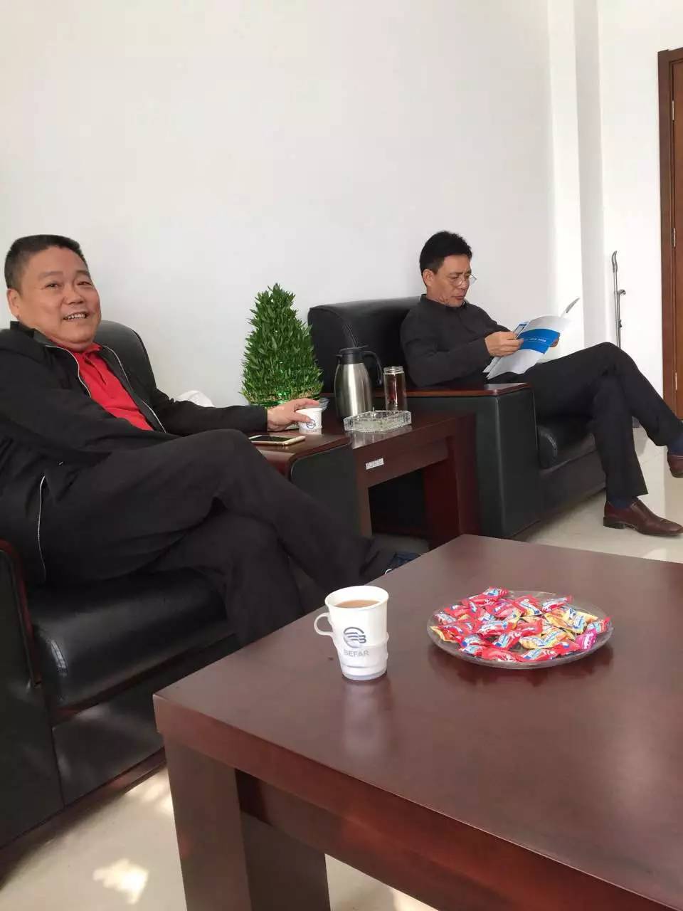 △圖為濱化集團(tuán)王樹(shù)華總經(jīng)理觀(guān)看我公司宣傳冊(cè),并與謝同寶董事長(zhǎng)愉快交流