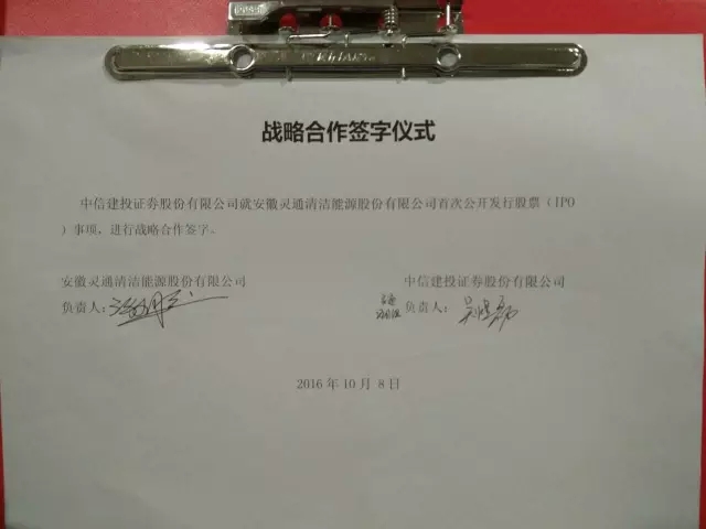 徽商故里,萬商云集。 10月18日上午,以“發(fā)展新理念、轉(zhuǎn)型新機遇”為主題的2016中國國際徽商大會在合肥隆重開幕。會議舉行了項目集中簽約儀式,全省簽約項目92個,投資總額942億元。我公司董事長謝同寶、總經(jīng)理吳德紅參加了本次徽商大會,簽約項目2個,一個是安徽靈通清潔能源股份有限公司就首次公開發(fā)行股票(IPO)事項與中信建投證券股份有限公司簽訂戰(zhàn)略合作協(xié)議的簽約項目,另一個是中融大有資本投資管理有限公司將投資安徽靈通清潔能源股份有限公司5億元人民幣的簽約項目