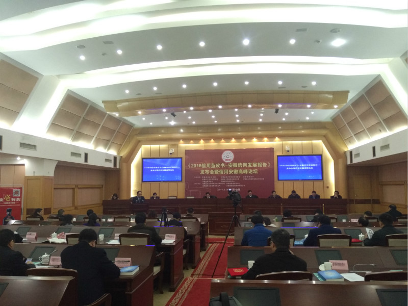 2月25日下午,由安徽省社會科學院、安徽省經(jīng)濟和信息化委員會、安徽省商務廳、安徽省工商行政管理局、安徽省人民政府法制辦公室、安徽省人民政府金融工作辦公室、安徽省信用協(xié)會及安徽省信用研究中心聯(lián)合舉辦的《2016信用藍皮書—安徽省信用發(fā)展報告》發(fā)布會暨信用安徽高峰論壇在安徽省人大會議中心三樓常委會議室舉行。