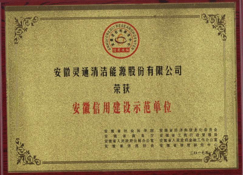 △圖為靈通能源榮獲安徽信用建設示范單位獎牌