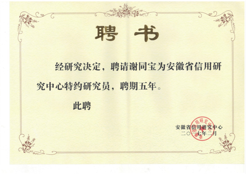 △圖為董事長謝同寶被聘為特約研究員聘書