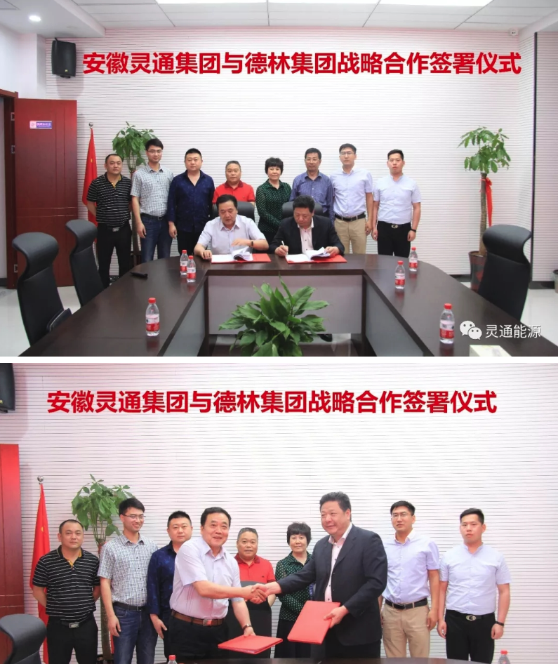 2018年4月2日德林集團(tuán)總裁張斌仁、神木德林榮澤能源運營股份有限公司總裁白子榮一行來到靈通集團(tuán)新辦公樓參觀考察,就接下來雙方全面合作進(jìn)行了深入洽談,并簽署了戰(zhàn)略合作協(xié)議。