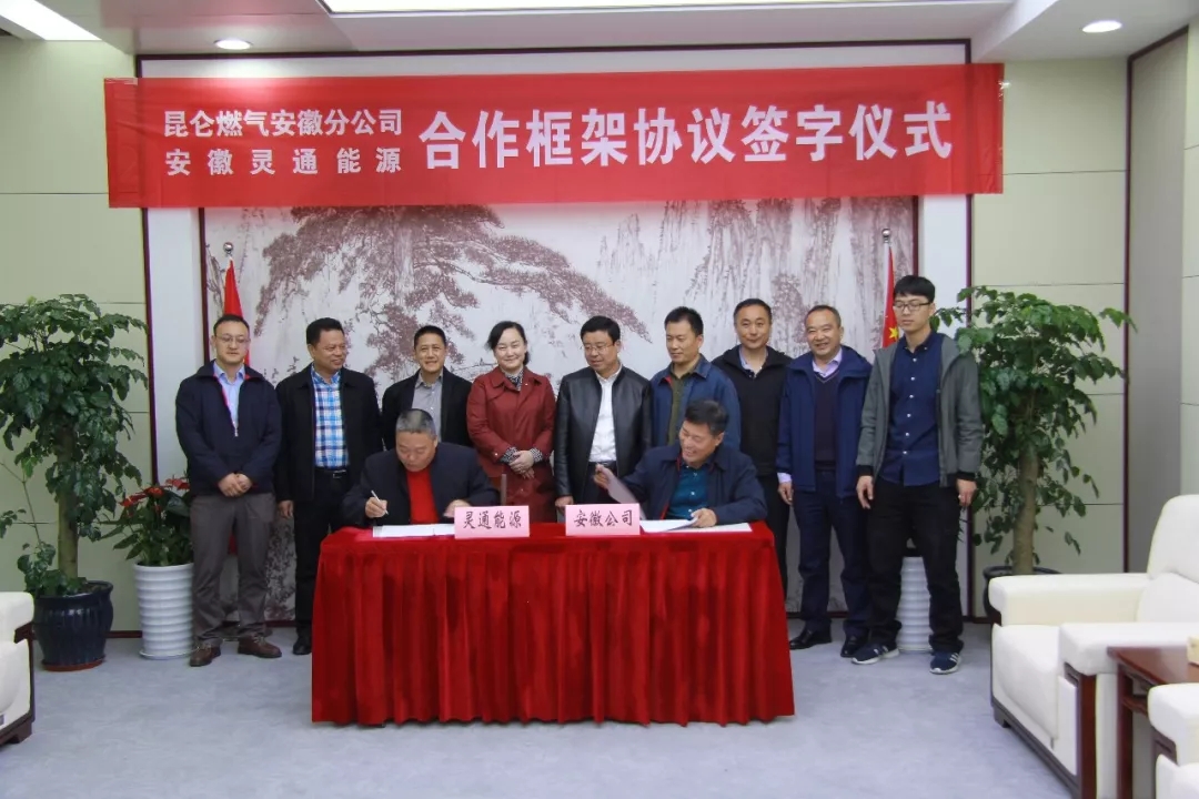 2019年4月10日,靈通能源與中石油昆侖燃氣有限公司安徽分公司簽署戰(zhàn)略合作框架協(xié)議。昆侖燃氣安徽公司黨委書記王發(fā)展、總經(jīng)理李東、副書記劉慶虎,副總經(jīng)理辛禮印,靈通集團董事長謝同寶、總經(jīng)理吳德紅,靈通能源總經(jīng)理吳偉生,靈通交投總經(jīng)理劉敏劍等出席簽約儀式。