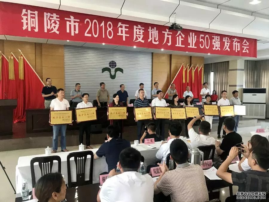 2019年7月3日下午,由銅陵市企業(yè)聯(lián)合會、銅陵市經(jīng)濟和信息化局、銅陵市統(tǒng)計局聯(lián)合舉辦的“2018年度銅陵地方企業(yè)50強”發(fā)布會,在銅化集團四樓會議室隆重召開。市委常委、常務(wù)副市長程雙林,市老干部、市“三會”老會長唐世定,市經(jīng)信局局長李勇,市統(tǒng)計局總統(tǒng)計師周睿,市社會組織和專項事務(wù)管理局局長楊宏斌,銅化集團公司董事長陳嘉生,50強企業(yè)負責(zé)人,市企聯(lián)部分會員及新聞單位記者等共計近百人一同參加了會議。靈通集團董事長謝同寶、總經(jīng)理吳德紅受邀參加了會議和授牌儀式。