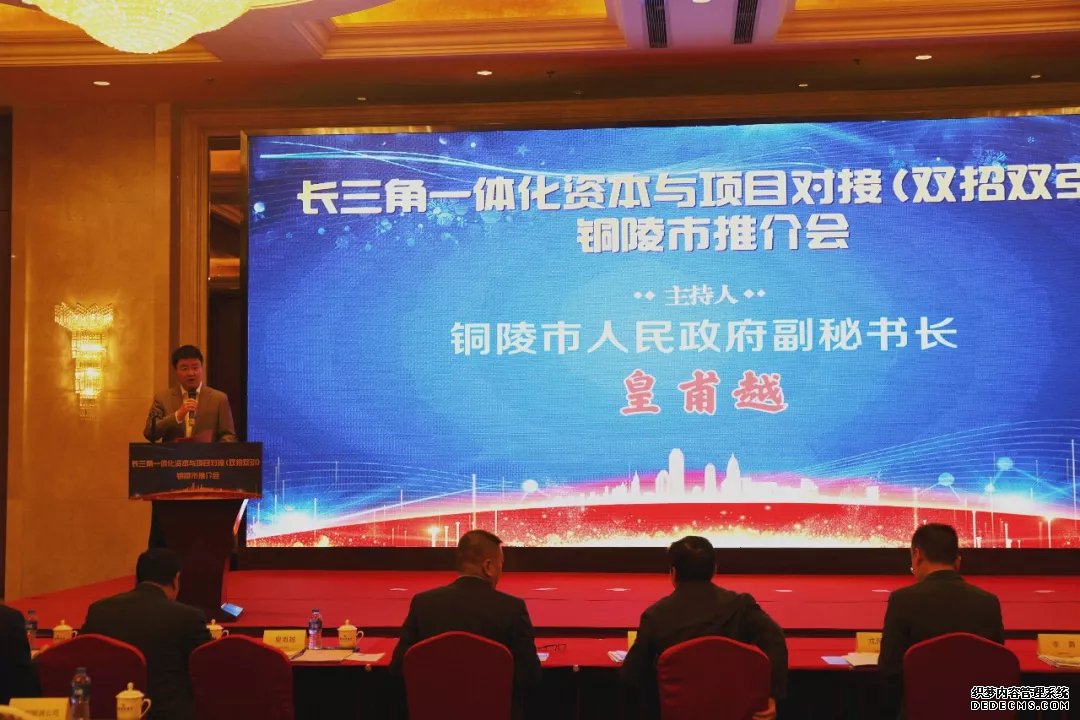 11月19日,長三角一體化資本與項目對接(雙招雙引)銅陵市推介會在江蘇省昆山市拉開帷幕。此次大會由銅陵市人民政府主辦,銅陵市經濟和信息化局、銅陵市招商服務中心共同承辦,參會領導有中共銅陵市市委常委、市政府常務副市長程雙林,銅陵市人民政府副秘書長皇甫越,銅陵市經濟和信息化局黨組書記、局長李勇等,多項重磅政策和項目在本次會上發(fā)布。
