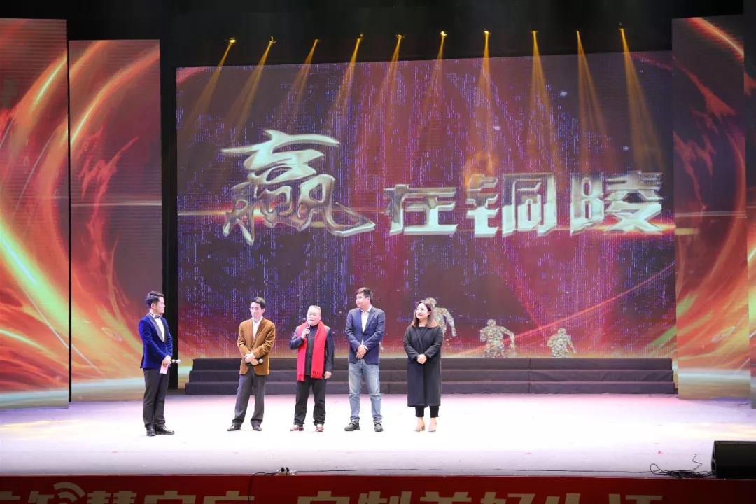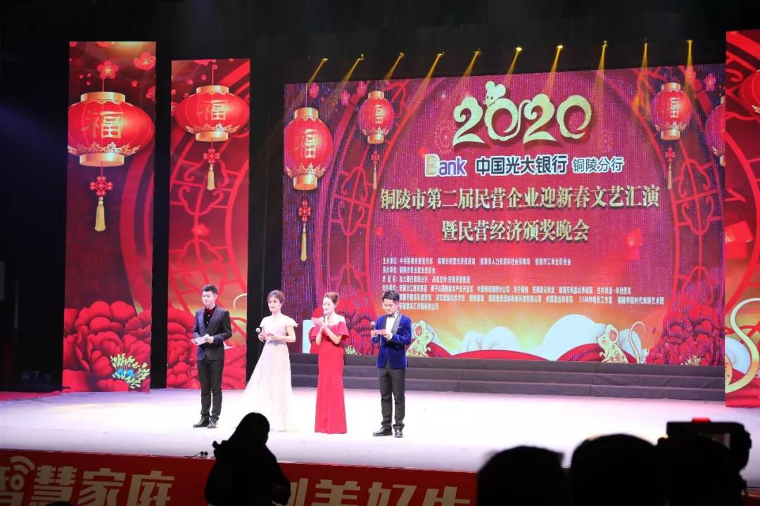 12月30日晚,由中共銅陵市市委宣傳部、市民營經(jīng)濟(jì)促進(jìn)局、市人力資源和社會保障局、市工商業(yè)聯(lián)合會主辦,市創(chuàng)業(yè)就業(yè)促進(jìn)局承辦,光大銀行銅陵分行總冠名,安徽靈通集團(tuán)戰(zhàn)略支持——2020銅陵市第二屆民營企業(yè)迎新春文藝匯演暨民營經(jīng)濟(jì)頒獎(jiǎng)晚會在五松山劇院舉行。市委副書記、市長胡啟生,市政協(xié)主席張夢生,市委常委、常務(wù)副市長程雙林,市委常委、市委宣傳部長潘榮華,市人大常委會副主任汪宜武,市老領(lǐng)導(dǎo),市企業(yè)家聯(lián)合會名譽(yù)會長唐世定,市政府秘書長周劍等領(lǐng)導(dǎo)出席。董事長謝同寶、總經(jīng)理吳德紅、財(cái)務(wù)總監(jiān)谷芳代表靈通集團(tuán)出席并接受頒獎(jiǎng)。