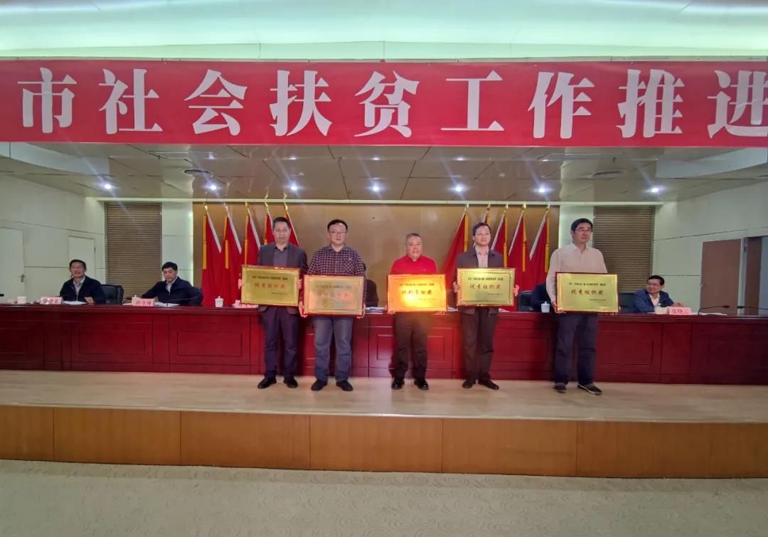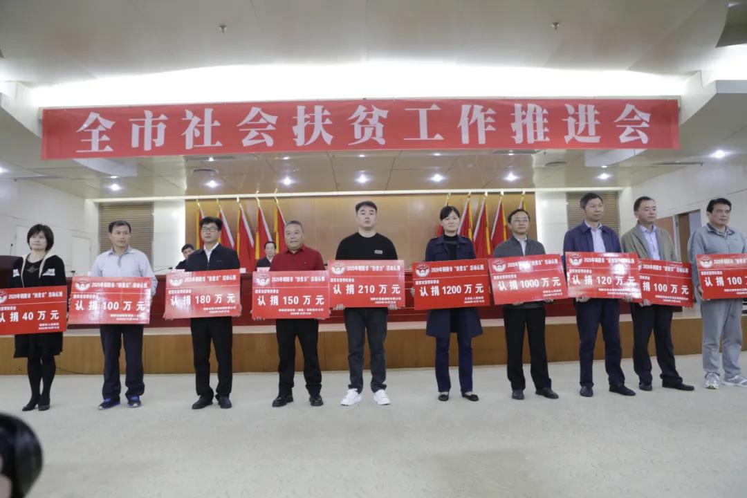 推進(jìn)會(huì)上,董事長(zhǎng)謝同寶作為“百企幫百村”企業(yè)代表作了《飲水思源 反哺社會(huì)》的主題發(fā)言。表示靈通集團(tuán)作為一家有擔(dān)當(dāng)、有社會(huì)責(zé)任感、有愛(ài)心的企業(yè),一定在市委市政府的領(lǐng)導(dǎo)下,積極響應(yīng)扶貧工作號(hào)召,發(fā)揚(yáng)“致富思源、富而思進(jìn),扶危濟(jì)困、共同富裕,義利兼顧、德行并重,發(fā)展企業(yè)、回饋社會(huì)”的光彩精神,踴躍參與投身于精準(zhǔn)扶貧工作。根據(jù)會(huì)議安排,董事長(zhǎng)謝同寶代表靈通集團(tuán)進(jìn)行項(xiàng)目認(rèn)捐150萬(wàn)元,同時(shí),大力支持全市“決勝全面小康,決戰(zhàn)脫貧攻堅(jiān)”攝影展榮獲“特別貢獻(xiàn)獎(jiǎng)”。