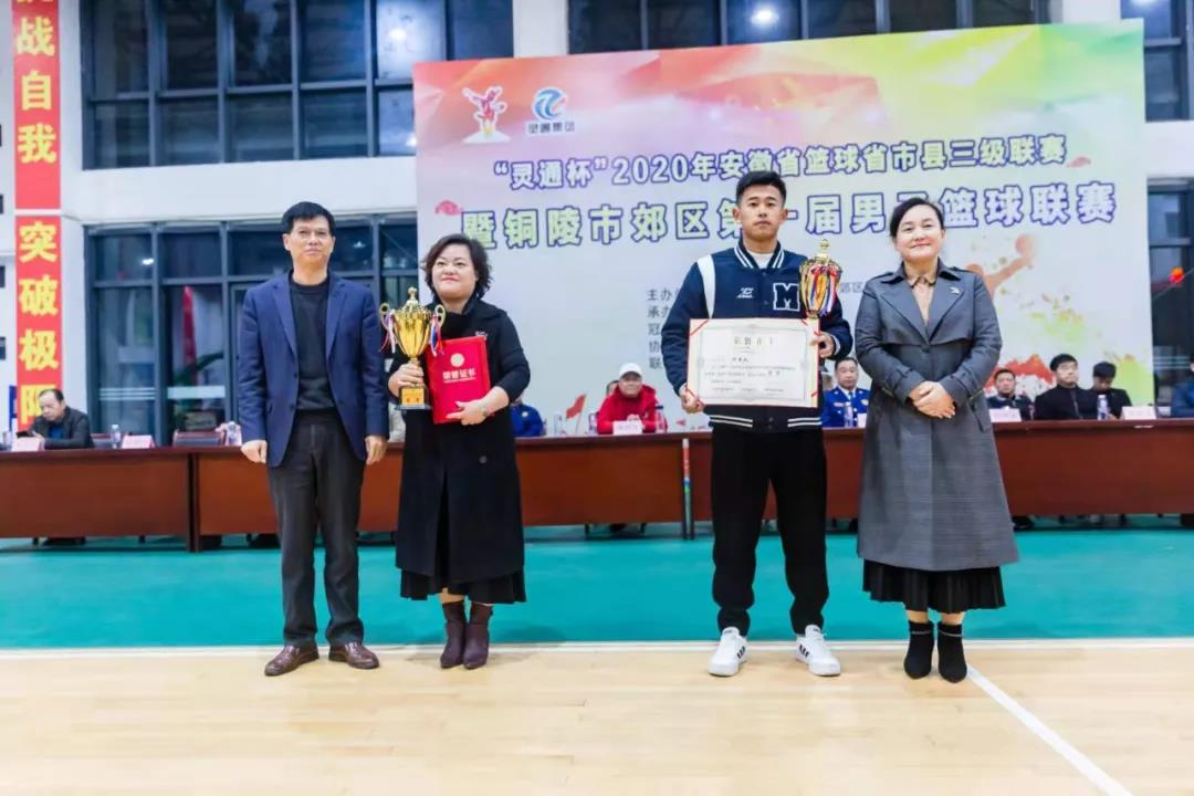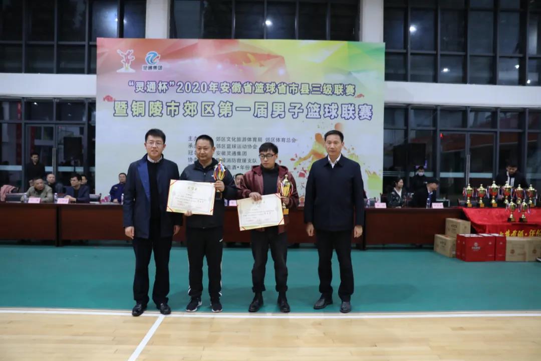 頒獎環(huán)節(jié)中,出席閉幕式全體領(lǐng)導(dǎo)依次為獲獎代表隊(duì)頒獎,并宣布“靈通”杯2020安徽省籃球省市縣三級聯(lián)賽暨銅陵市郊區(qū)首屆男子籃球賽圓滿結(jié)束。靈通集團(tuán)董事長謝同寶做籃球閉幕式致辭,向?qū)Ρ緦没@球賽給與支持和幫助的領(lǐng)導(dǎo)、裁判員、工作人員表示感謝,對取得優(yōu)異成績的代表隊(duì)表示祝賀。