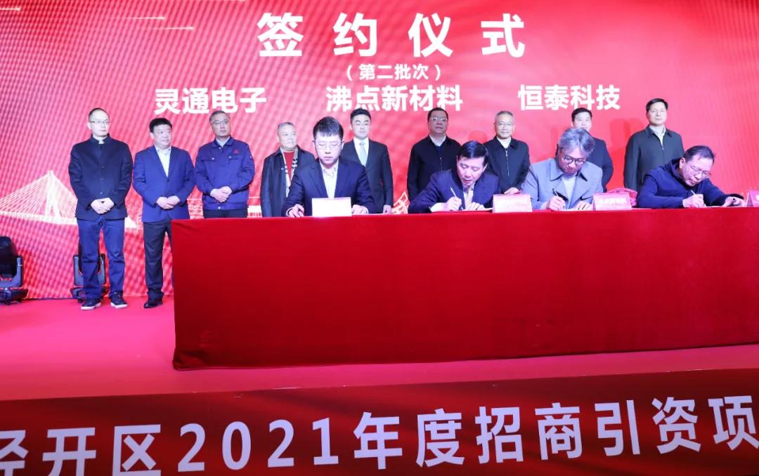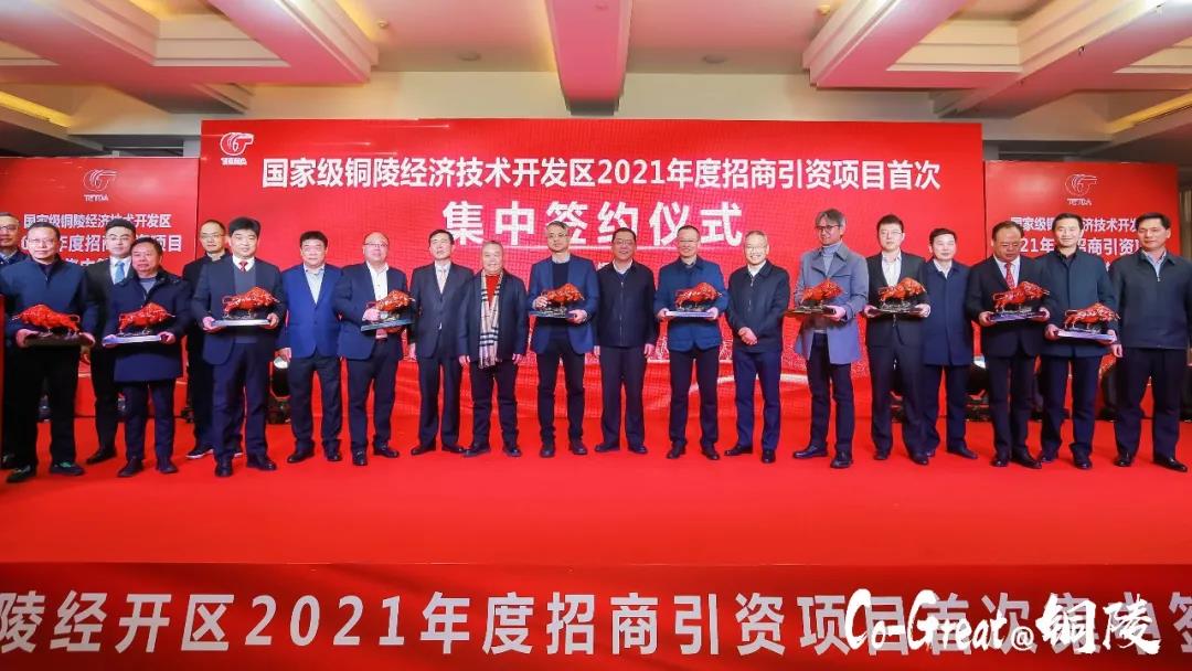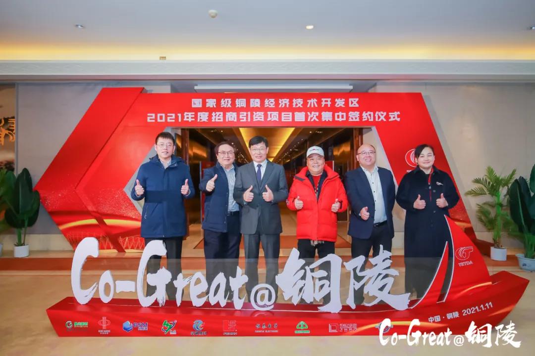 2021年1月11日,銅陵經(jīng)開區(qū)2021年度招商引資項目首次集中簽約儀式在銅雀臺金陵國際大酒店舉行,市委書記丁純,市長胡啟生,常務(wù)副市長程雙林,市委常委、經(jīng)開區(qū)黨工委書記黃化鋒,市委常委、宣傳部長、秘書長潘榮華及相關(guān)負責(zé)同志出席。靈通集團董事長謝同寶出席活動并見證簽約,靈通集團總經(jīng)理吳德紅、靈通能源總經(jīng)理胡珂受邀出席。