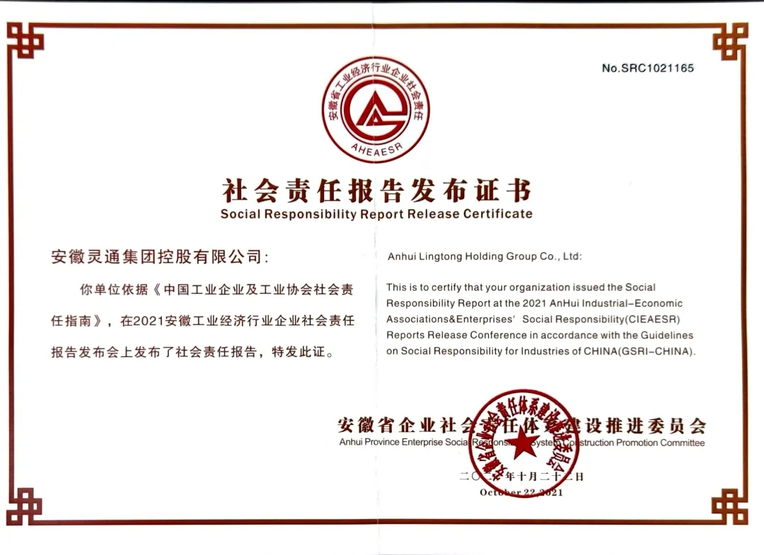 本屆發(fā)布會(huì)上,我省有118家企業(yè)發(fā)布了社會(huì)責(zé)任報(bào)告,銅陵市共有3家,其中安徽靈通集團(tuán)作為銅陵市唯一一家民營(yíng)企業(yè)參與發(fā)布(另有銅陵有色金屬集團(tuán)及銅陵港航投資集團(tuán))。會(huì)議安排11位企業(yè)代表上臺(tái)領(lǐng)取證書,董事長(zhǎng)謝同寶代表靈通集團(tuán)上臺(tái)接受證書頒發(fā)。