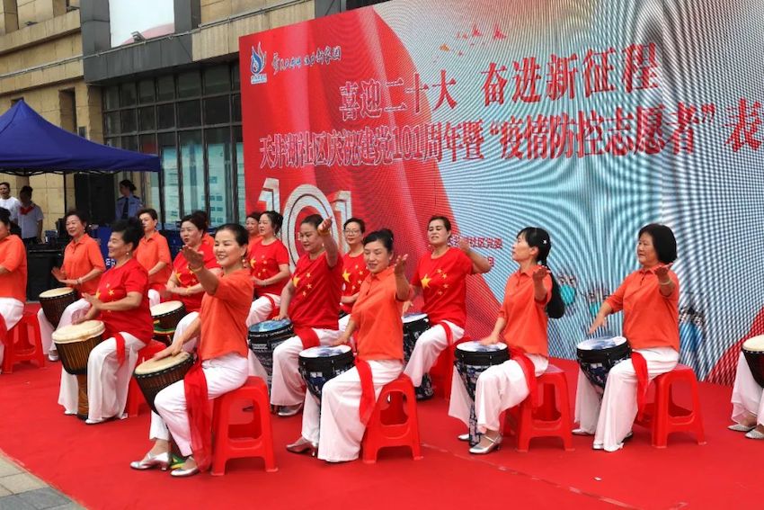 上午8:30分,文藝演出伴隨著暖場(chǎng)鼓《愛(ài)我中華》和《最美的中國(guó)人》拉開(kāi)了序幕,活動(dòng)現(xiàn)場(chǎng)節(jié)目精彩紛呈、形式豐富多樣。本次演出,沒(méi)有特別的舞臺(tái),沒(méi)有夢(mèng)幻的燈光,大家歡聚在此,用平凡熱情的演出,去慶祝黨的101歲生日。這些節(jié)目無(wú)不向大家傳達(dá)中國(guó)共產(chǎn)黨帶領(lǐng)下的人民對(duì)黨的熱愛(ài)和居民朋友們幸福的快樂(lè)生活。